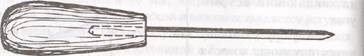 Широко применяется ромбическое шило. Оно постоянно в работе, особенно при плетении дна и ручек корзин. Этим шилом можно легко сделать отверстия в пруте или палке, не расколов ее.