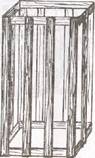 Щемилка служит для очистки прутьев от коры. Вы ее можете сделать сами. Они бывают деревянные и металлические. Деревянная делается так. Возьмите три дощечки толщиной 5-6 мм, шириной 20 мм и длиной две по 200 и одну 80 мм. Короткую дощечку поставьте между длинными, столкните в одну сторону и скрепите шурупами, как показано на рисунке 7. Получится двухрожковая вилка. Прут закладывают в щель, сжимают рожки вилки и протягивают.