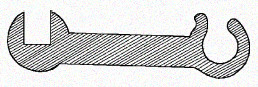 Крюк. Пригодится вам при сгибании лучков из ореховых или ивовых палок. Он похож на большой гаечный ключ, только форма одного захвата не прямоугольная, а круглая. Прямоугольным захватом пользуются при сгибании палок, когда требуется не просто согнуть, а надломить ее, например, при изготовлении изделий квадратной формы.