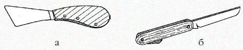 Рис. 11. Ножи: а – для обрезания концов прутьев на готовой корзине; б – обыкновенный перочинный нож