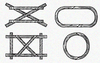 Сделать их можно из чурок дров, из планок старых ящиков, нашивая их на обручи или сшивая между собой.