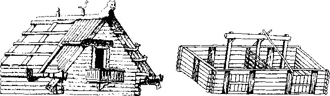 § 111. Основным материалом для постройки жилища служит разного рода дерево: дом либо рубят из плах или цельных древесных стволов, либо плетут из хвороста. Наряду с деревом уже с давних времен употребляют также землю и глину для землянок и мазанных домов. Кирпичи первоначально применяли только при постройке церквей; крестьянские дома из кирпича стали строить в деревнях не раньше XVIII в.