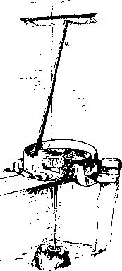 Однако круг насажен на стержень цилиндра не непосредственно, а с помощью крестовины из двух дощечек; на их концах укреплены четыре штыря, идущие от находящегося наверху круга. Дощечки с четырьмя штырями вращаются вместе с кругом, в то время как цилиндр и стержень остаются неподвижными.