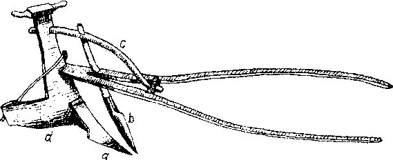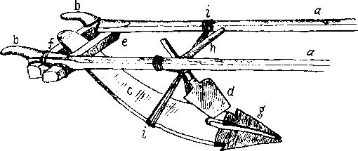 § 11. Описанные (§ 10) сохи отличаются от орудий типа плуга не только отсутствием подошвы или полоза, но также тем, что они не переворачивают пласт. У них нет режущей части, чтобы отваливать пласт, а их полица развита слабо, так что она пласт не переворачивает и не отваливает. Назначение описанных нами типов