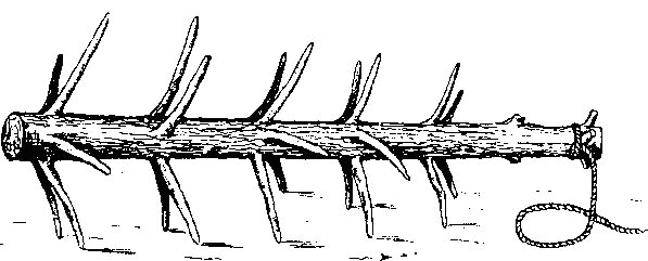 Как мы видим, в этой бороне нет ни одного железного штыря или винта. Она такая легкая, что зубья ее входят в землю неглубоко. Если же нужно боронить на большую глубину, на борону кладут груз. Преимущество этой бороны заключается в том, что сломанный зуб можно сразу заменить.