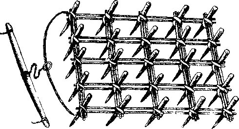 Такой суковаткой пользуются главным образом в лесных местностях, особенно на подсеках. Плетеная же борона (плетенка, кольцеватка) употребляется как в лесистых, так и в безлесных районах. Она неизвестна только украинцам. У других восточно- славянских народов она везде примерно одинакова и лишь в севернорусских областях нередко бывает немного больше по своим размерам. Если у обычной южнорусской бороны 25 зубьев (у огородников изредка 30), т. е. 5—6 рядов по 5 зубьев, то на севере спорадически встречаются бороны с 72 зубьями (9 рядов по 8 зубьев), хотя обычное их число — 35 (7 рядов по 5 зубьев). Размеры бороны с 25 зубьями — 160—180 см в длину, ширина на 13—17 см меньше длины.