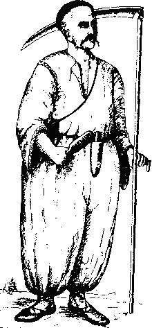 На рис. 111 изображен украинский крестьянин в рубахе, надетой на восточный манер (по рис. А. Ригельмана, 1785 г.). Русским и белорусам (рис. 110) совершенно чужд этот способ ношения рубахи. У украинцев, особенно в лесных местностях, сохранился также и старый способ носить рубаху поверх штанов (ОР РГО, I, 309 и 318; Кольберг..